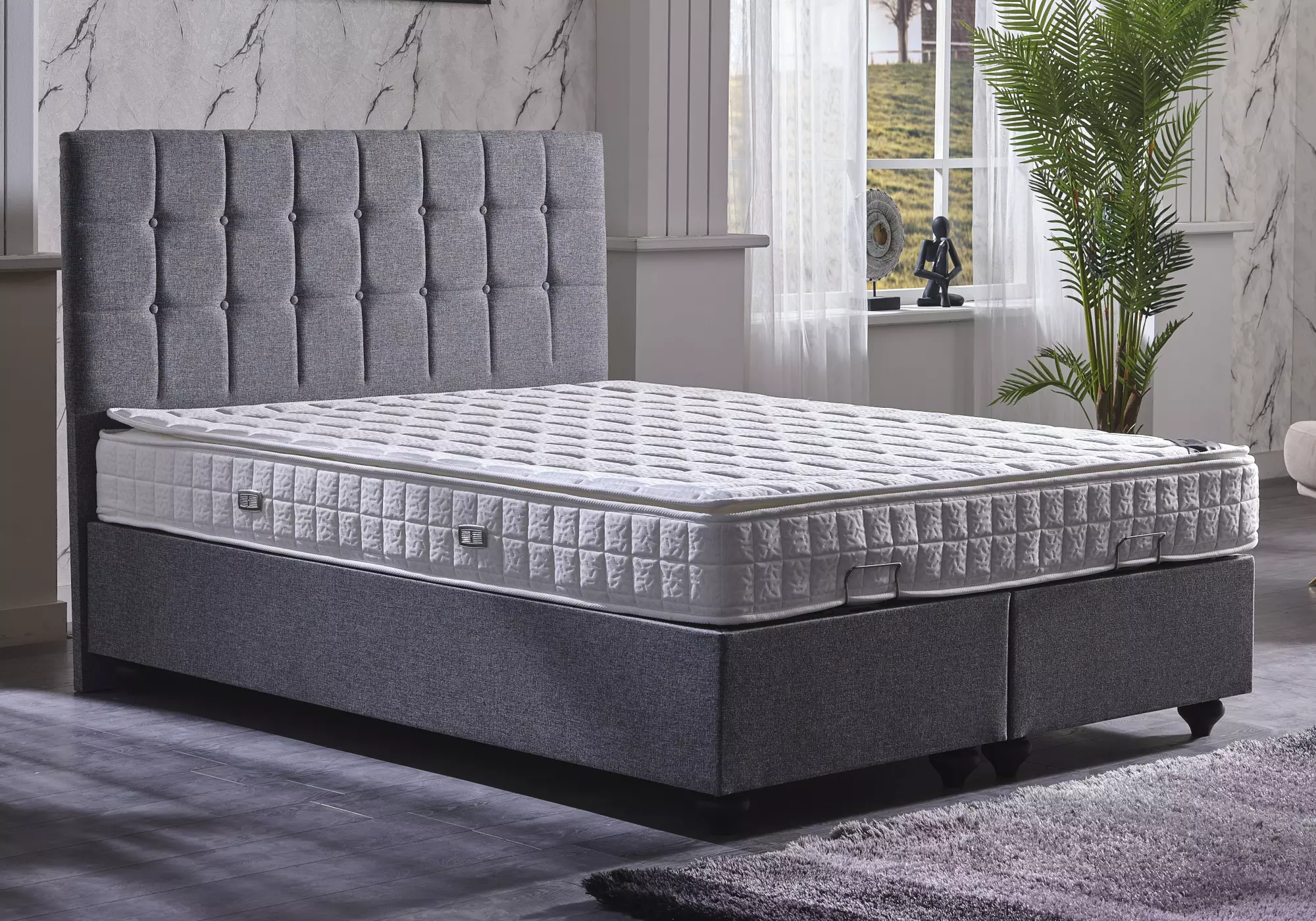 Découvrez le lit-coffre gris STAR, alliant élégance et fonctionnalité. Avec son design unique et son espace de rangement, il est le choix idéal pour toute chambre moderne.