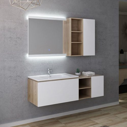 Meuble de salle de bain 80cm et son miroir avec éclairage intégré, et simple vasque design.