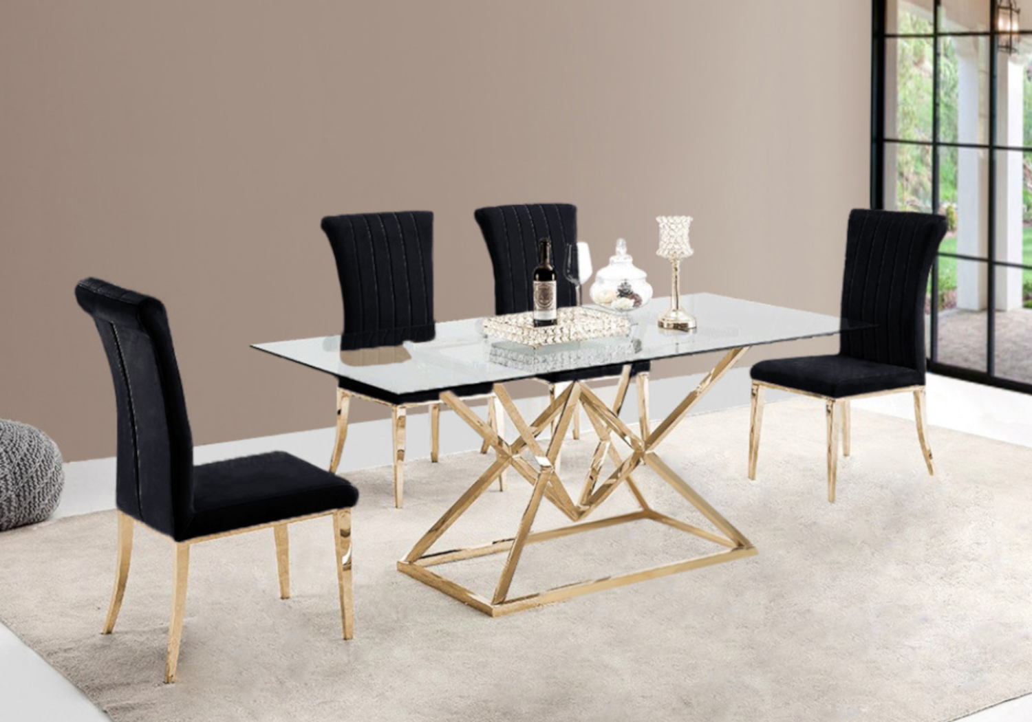 Ensemble table + 6 chaises noires doré pour sublimé votre salle à manger, coin repas.